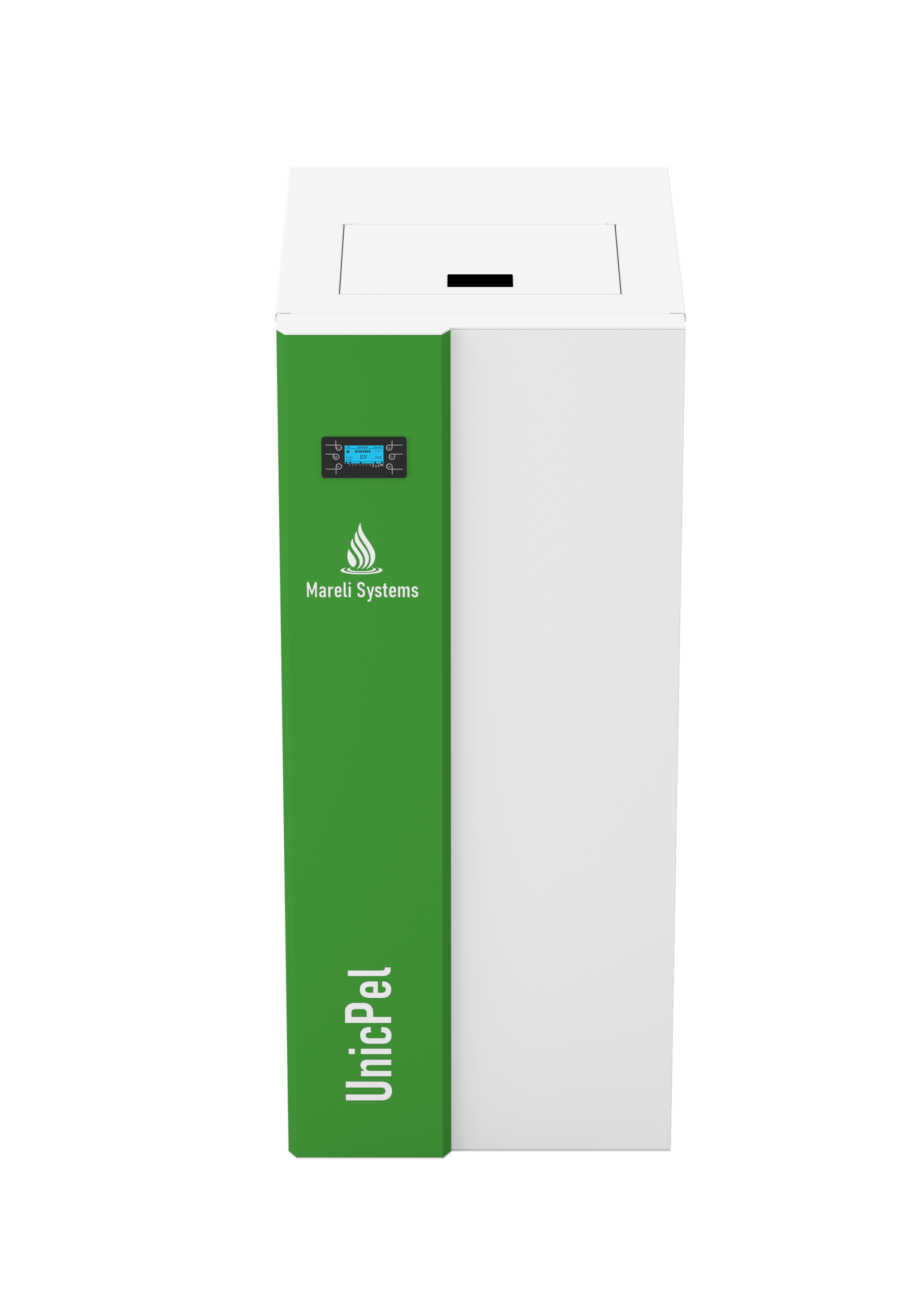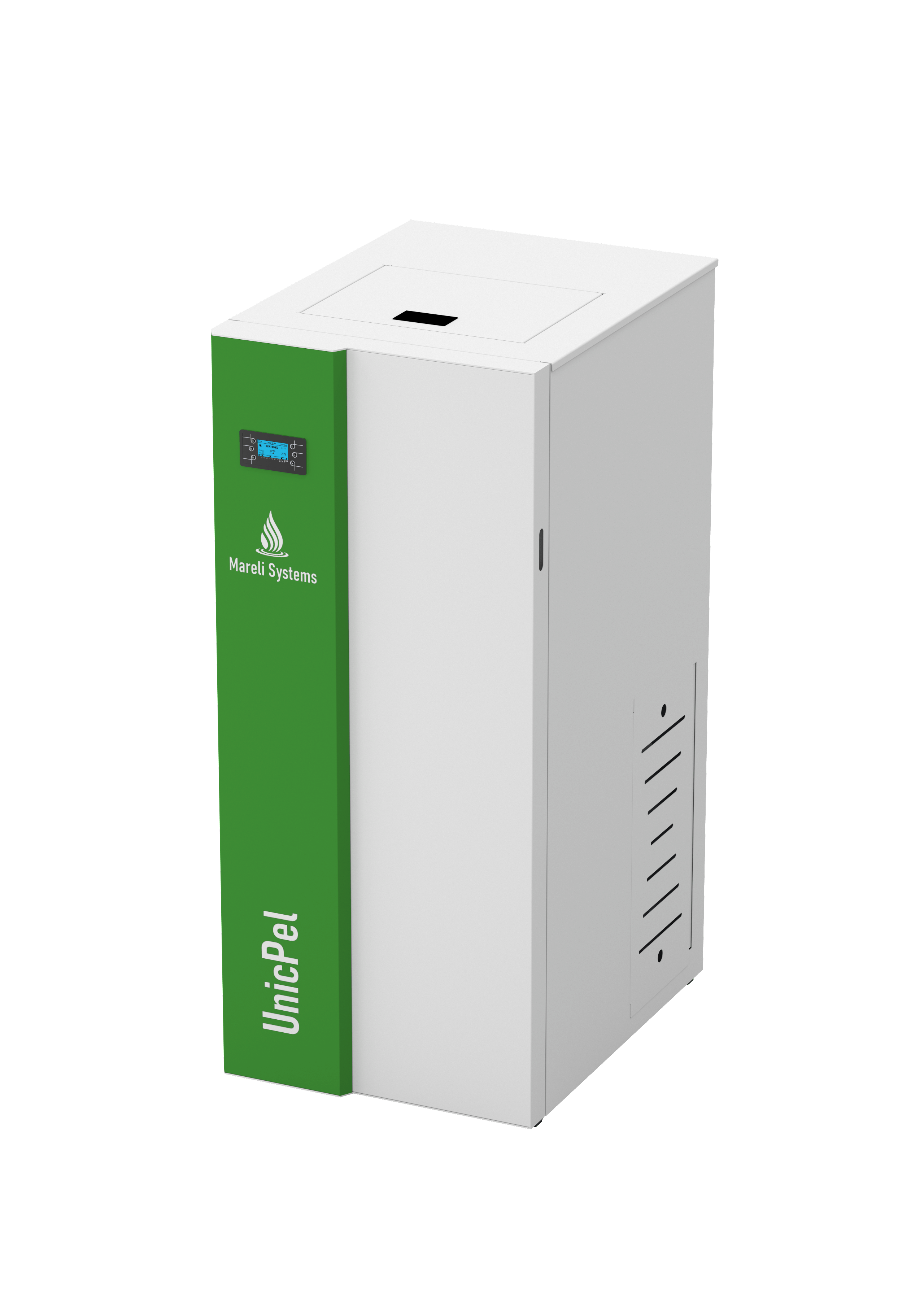 UnicPel je vybaven velkokapacitním integrovaným zásobníkem na pelety, který je